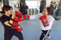 | パンチの打ち方から | 女性メンバーも | 防具を付け,基本の受け返し |